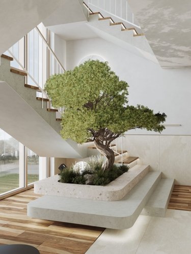 Многоуровневое озеленение начинается с крупномеров , заполняя