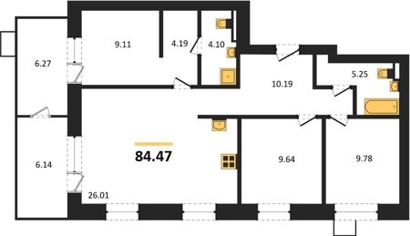Площадь от 84.47 м2