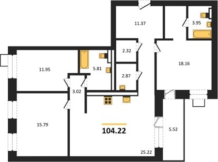 Площадь от 104.22 м2