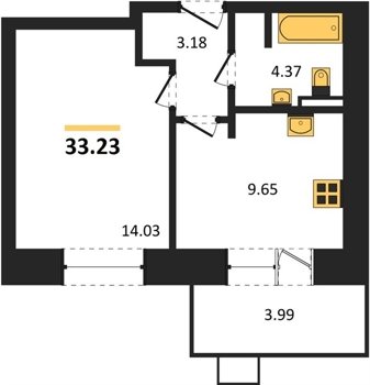 Площадь от 33.23 м2