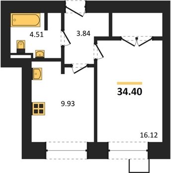 Площадь от 34.4 м2