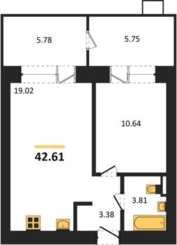 Площадь от 42.61 м2