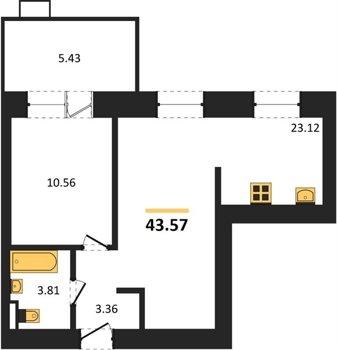 Площадь от 43.57 м2