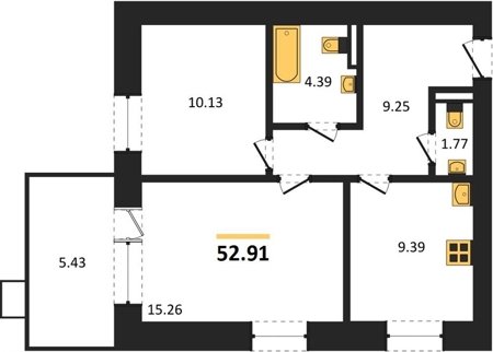 Площадь от 52.91 м2