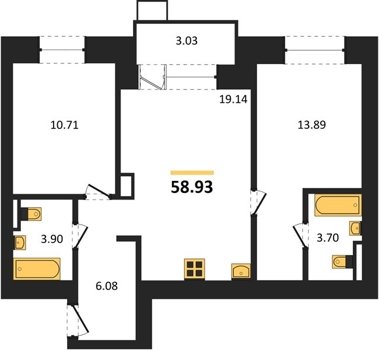 Площадь от 58.93 м2