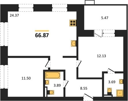 Площадь от 66.87 м2