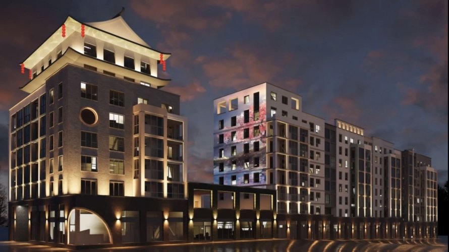 Архитектурная подсветка подчеркивает красоту и неповторимость жилого комплекса , создавая праздничное настроение .