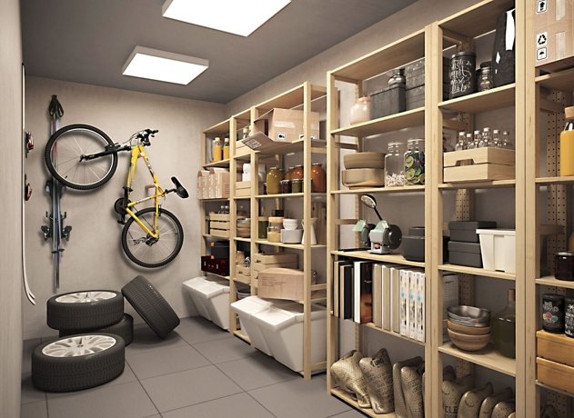 Индивидуальные кладовые площадью от 3,5 до 5,5 м² помогут хранить вещи в доступном месте и не загромождать квартиру