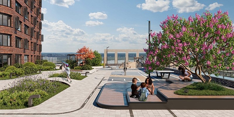 Республика – это престижное и продуманное окружение, камерный двор на кровле стилобатной части, шикарная общая терраса и невероятные виды на город